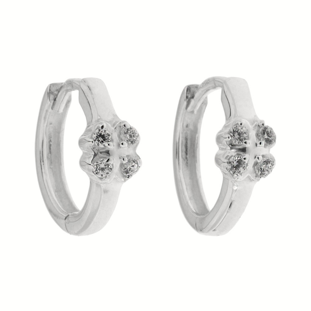 Oblíbený kruhový tvar náušnic s několika vsazenými lesklými kamínky v každé z nich, které rozzáří ženskou tvář.