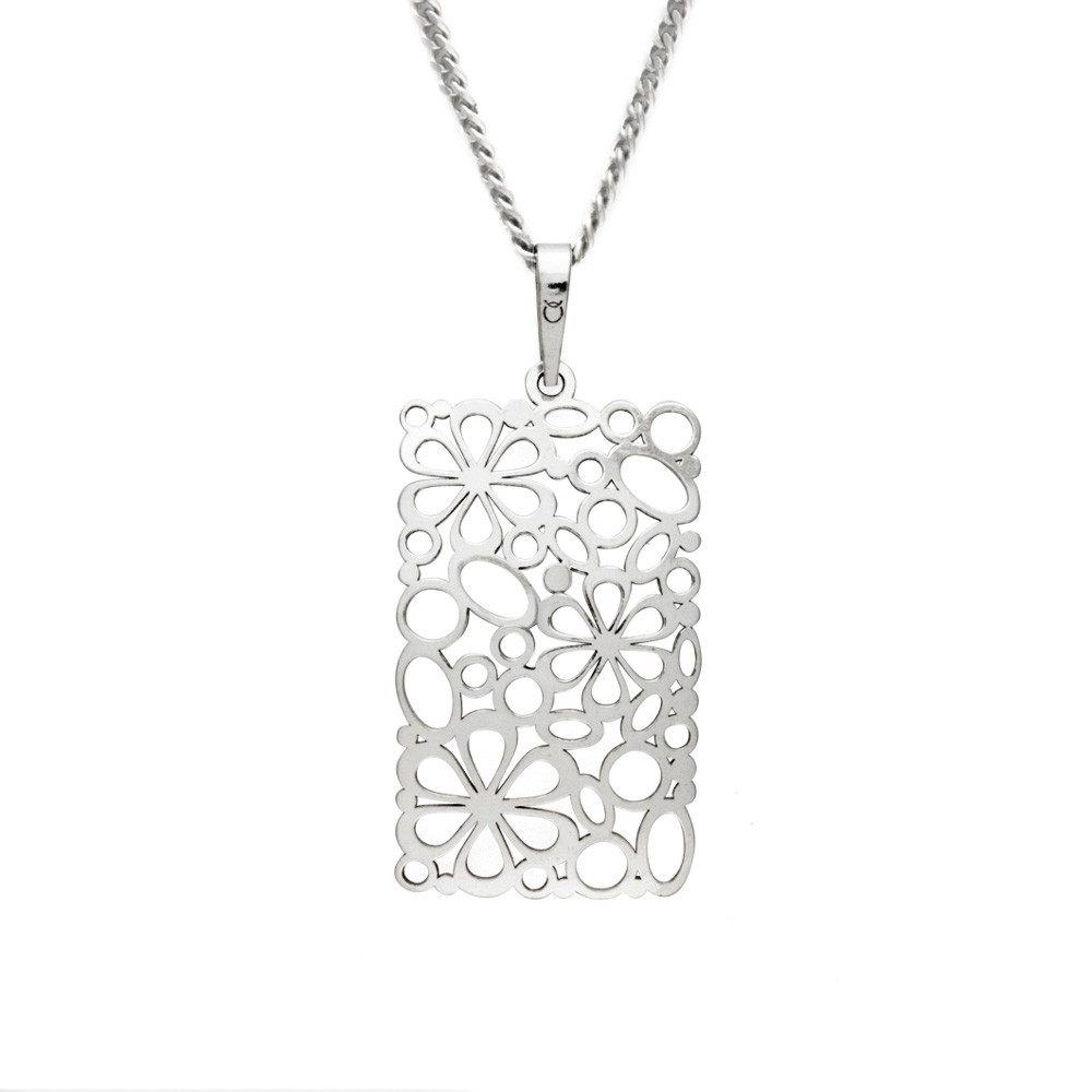 Jako okno do rozkvetlé vonící zahrady se otevírá stříbrný přívěsek s řetízkem v kompozicí něžných květin pro potěšení oka i srdce.