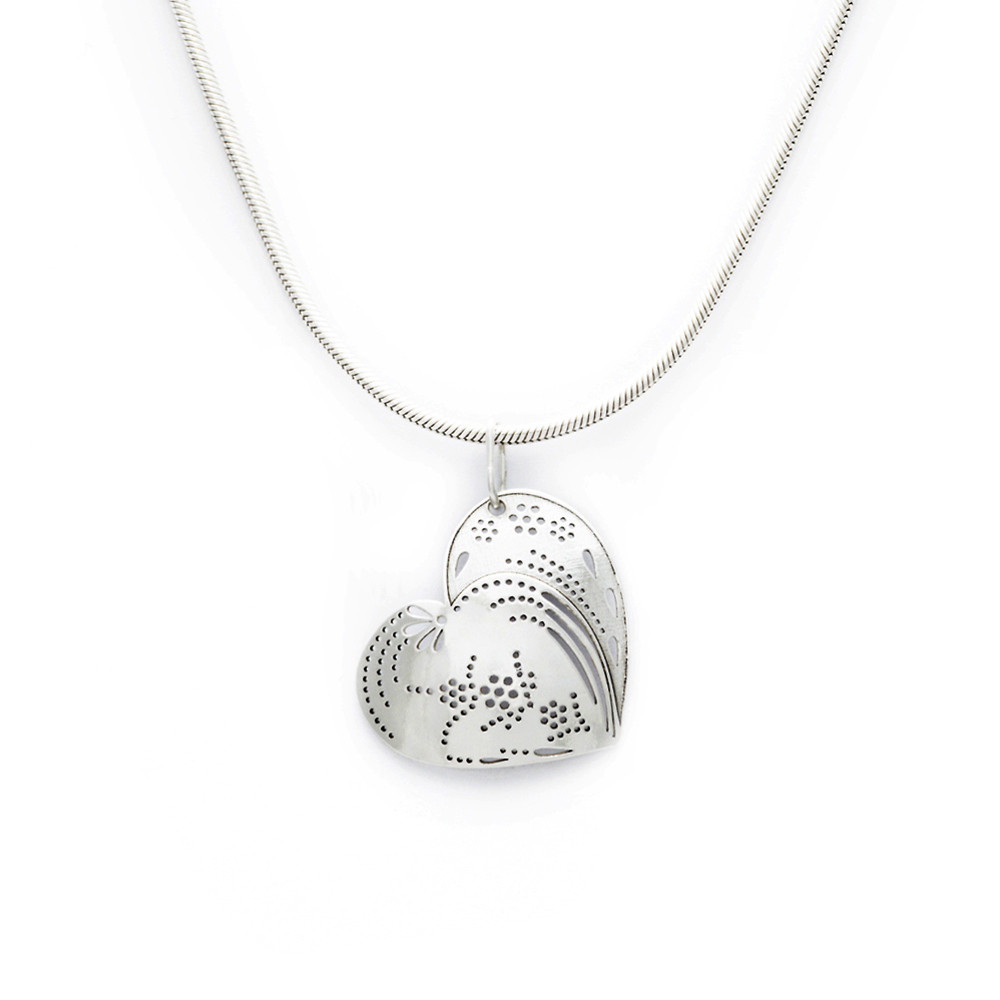 Jemné linie stříbrného přívěsku na řetízku rozechvívají srdce dotekem věčné milostné písně.