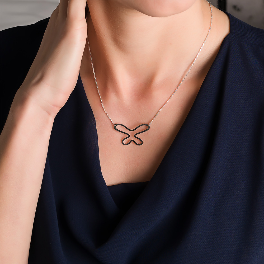 Dokonalost tvaru motýlích křídel byla inspirací k vytvoření elegantního stříbného náhrdelníku pro ženu, která miluje jednoduchost.