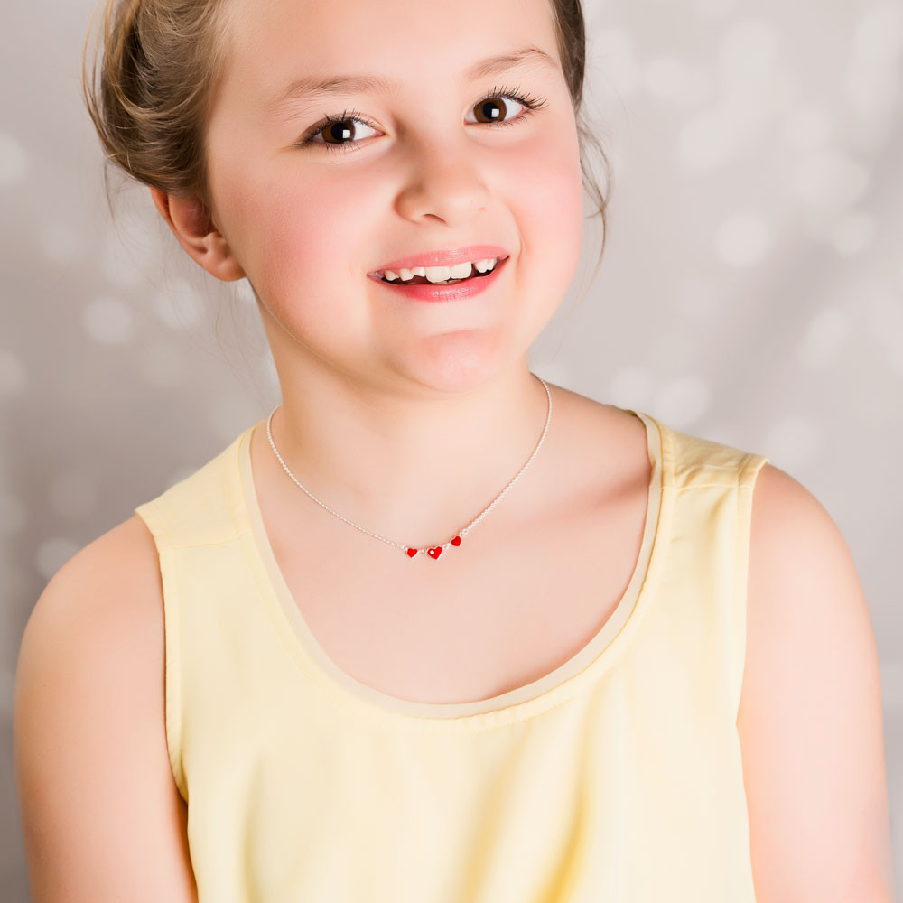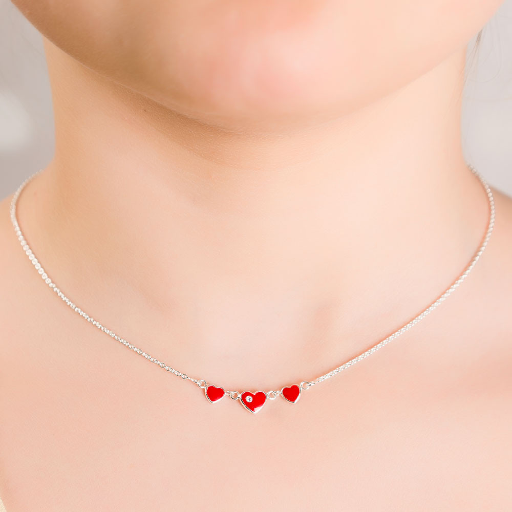 Něžná srdíčka doplněná bílým kamínkem zasazená do stříbrného náhrdelníku na řetízku jsou jasným symbolem dětské radosti a lásky. Společně s náušnicemi NA8004 tvoří volný set.