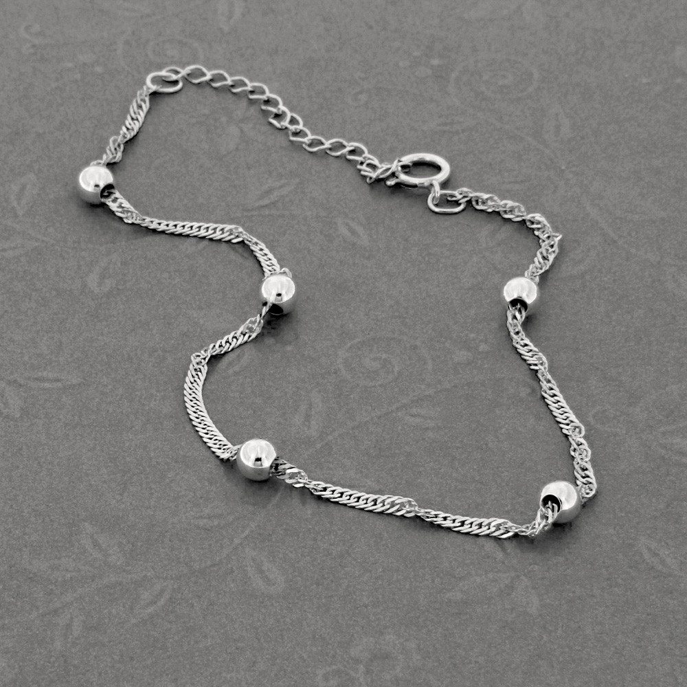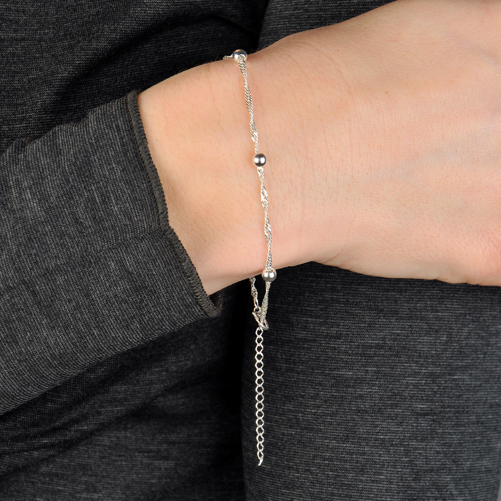 Oblíbený řetízkový náramek se vsazenými stříbrnými kuličkami, s možností upravit při zapínání jeho délku až na 21 cm.
