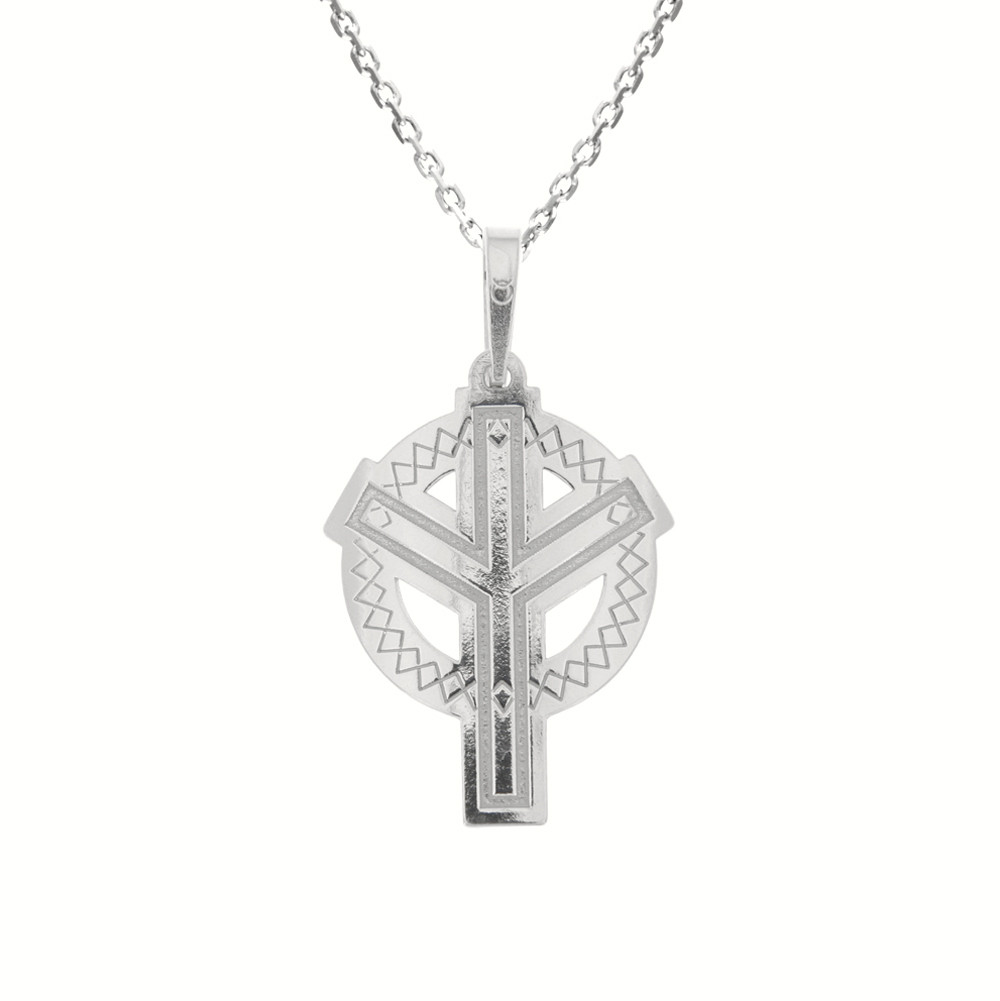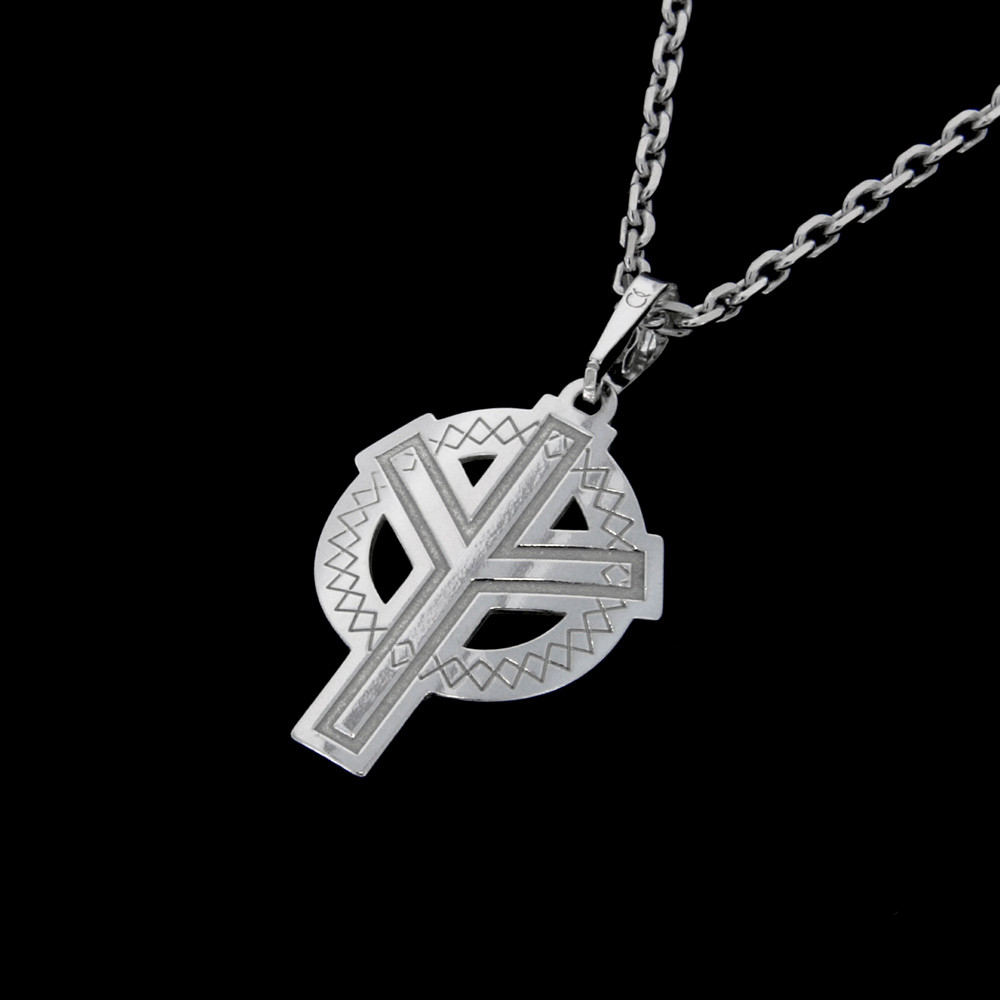 Stříbrný přívěsek na řetízku symbolizuje prostřednictvím runy Algiz ochranu a obranu domova. Vikingové si jí mimořádně vážili pro její silný pozitivní a ochranný význam.