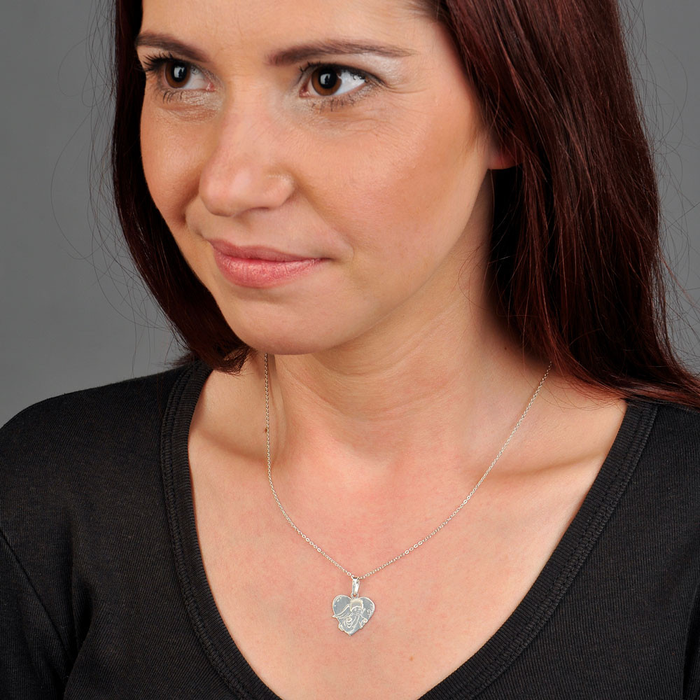 Strážný anděl chránící srdce a dodávající sílu je ztvárněn do podoby tohoto půvabného stříbrného přívěsku na řetízku.