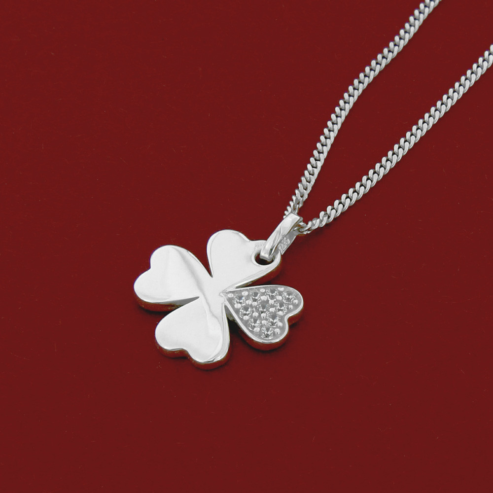 Ještě více štěstí zkuste k sobě přilákat pomocí drobných lesklých kamínků, vložených do stříbrného čtyřlístku na řetízku!