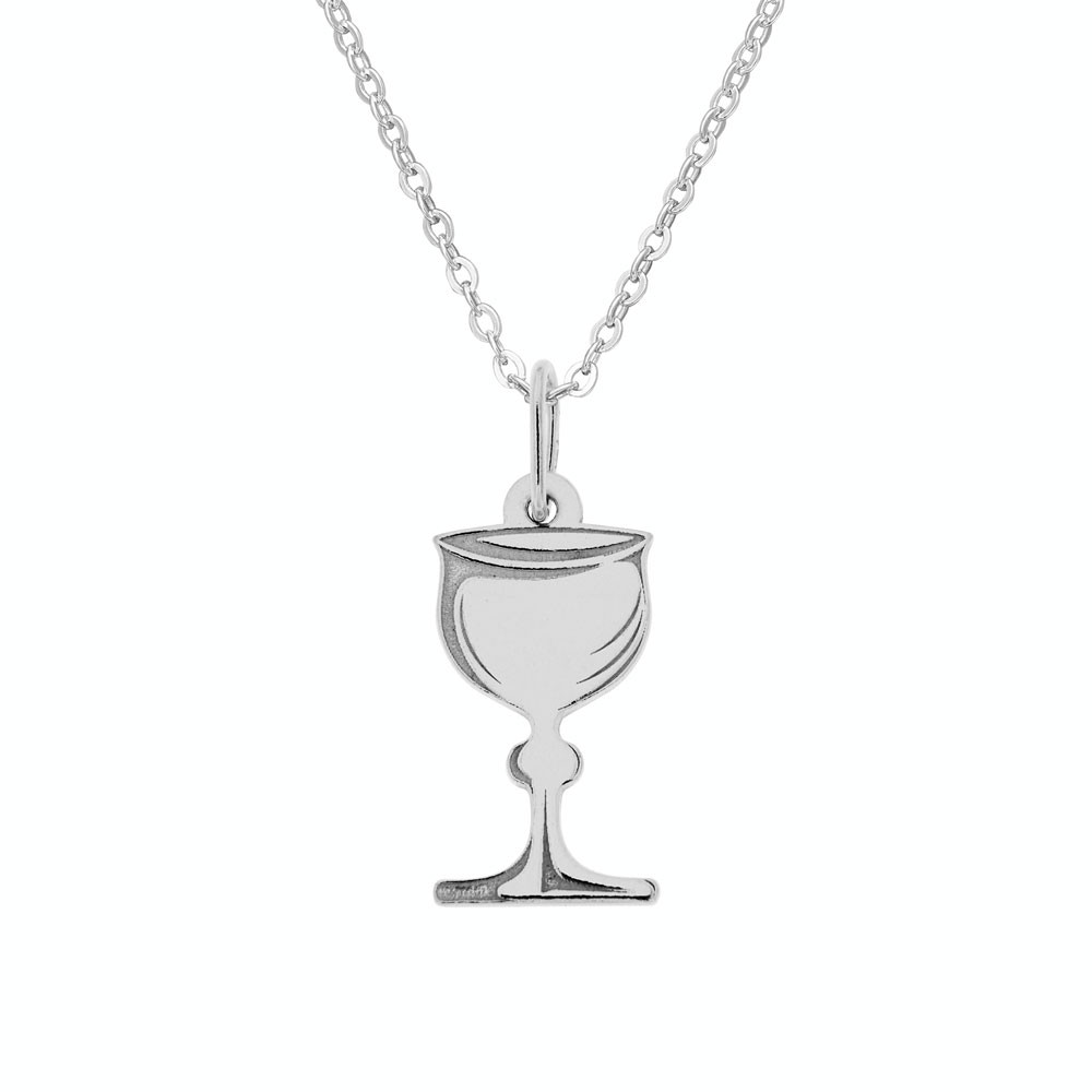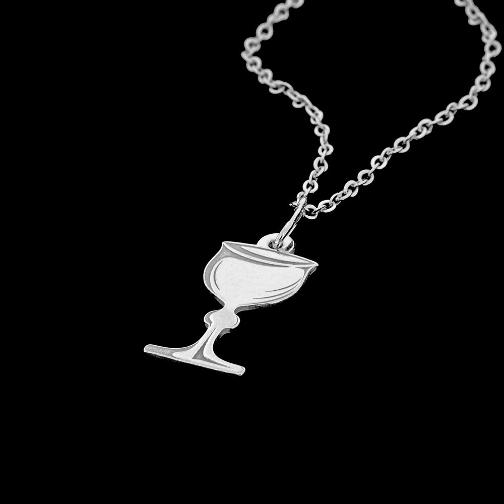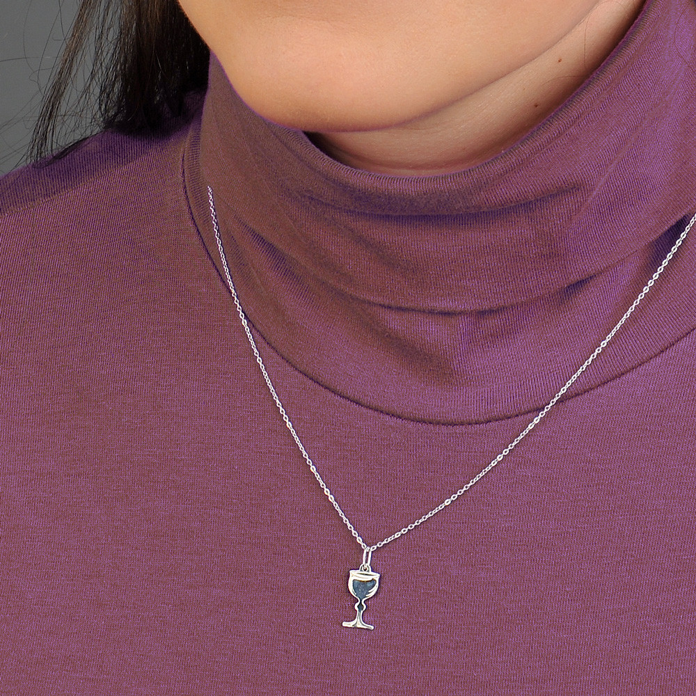 Význam kalicha naplněného vínem, jenž podal Ježíš svým učedníkům při Poslední večeři, připomíná tento prostý stříbrný přívěsek na řetízku.