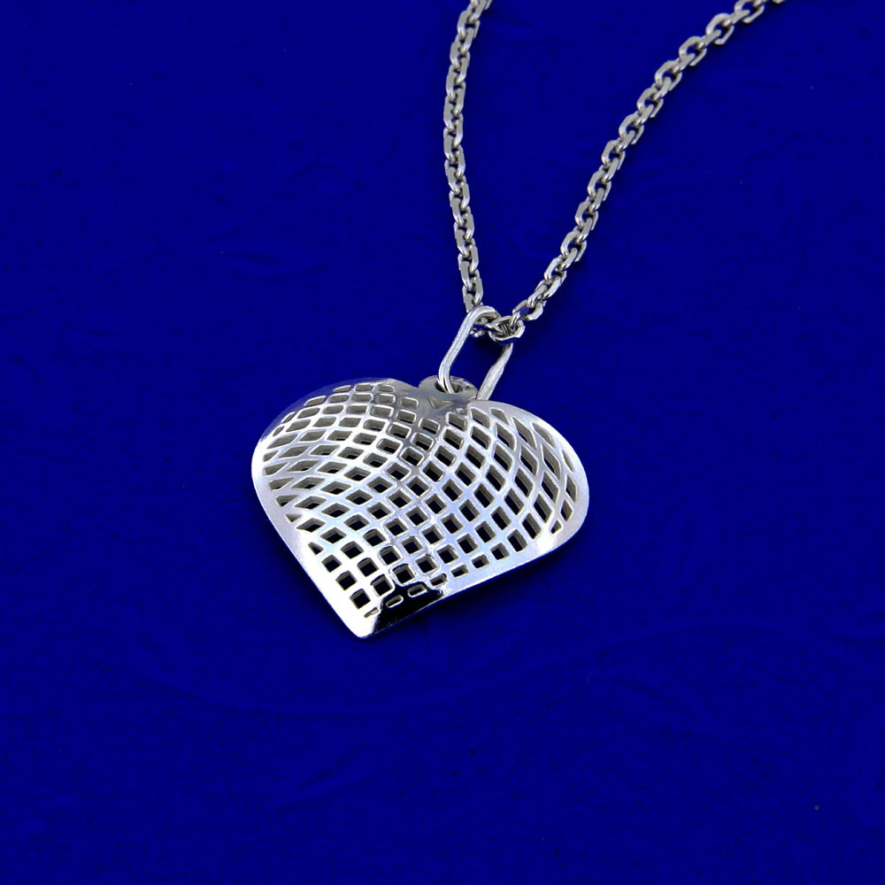 Pevně spojena dvě srdce ve stříbrném přívěsku na řetízku jako příslib věčné lásky.