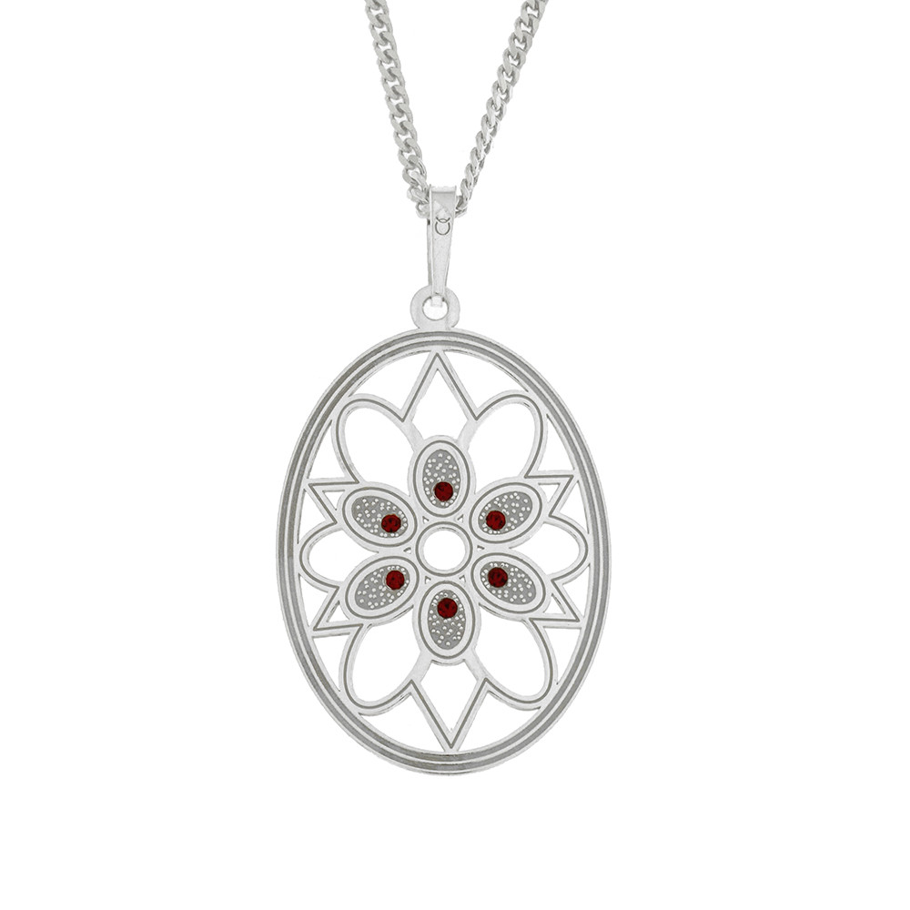 Stříbrný přívěsek na stříbrném řetízku, zdobený kamínky, vyvolává vzpomínku na zručné ruce babičky či prababičky, vytvářející háčkovanou krásu.