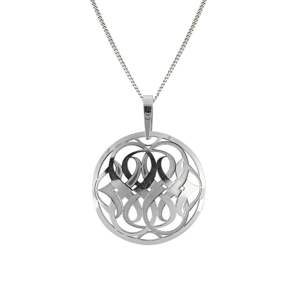 Působivý stříbrný řetízek se stříbrným přívěskem, na kterém se proplétají linie stužky v zajímavém, náročném, plasticky působícím tvaru.