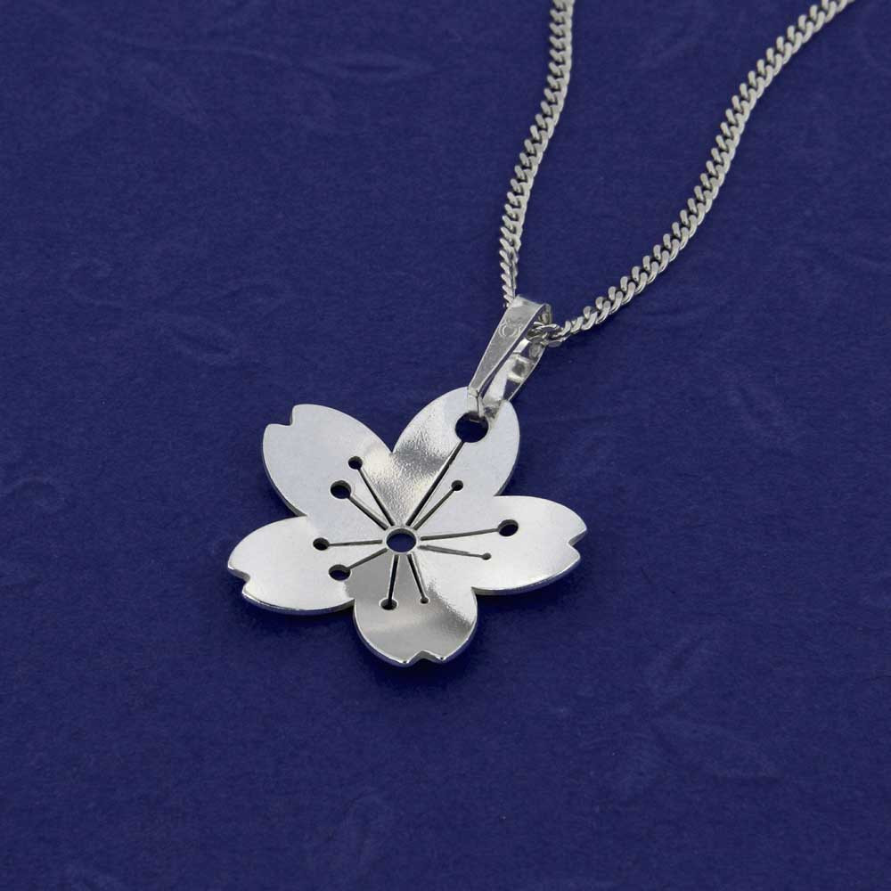 Na stříbrný řetízek se snesl něžný stříbrný třešňový květ, aby spolu vytvořily v kompletu nerozlučnou dvojici.