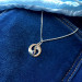 Kruh, symbol nekonečna, obepíná plující ryby, které se na svět dívají modrými očky. Stříbrný přívěsek je zavěšen na stříbrném řetízku.