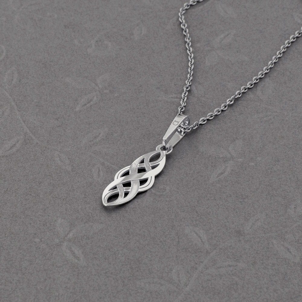 Elegantní stříbrný přívěsek na řetízku s motivem proplétajících se linií popínavých rostlin.