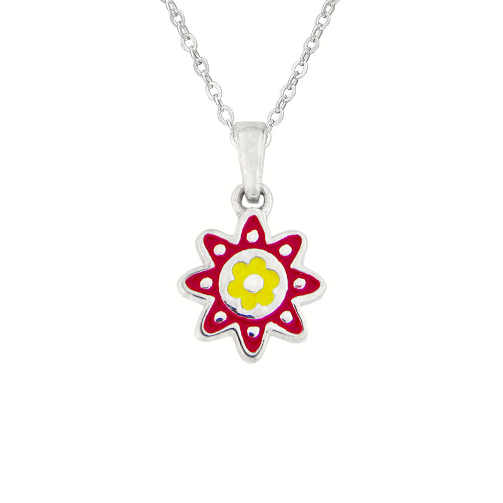 Co rozzáří dívčí oči u stříbrného přívěsku na stříbrném řetízku víc? Oblíbená růžová barva sluníček nebo žlutá kytička uprostřed?