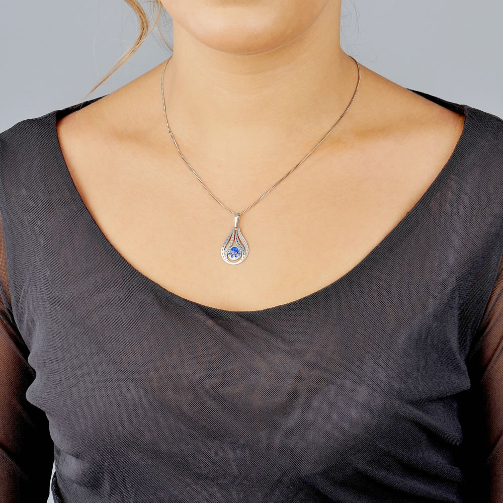 Jako jemně zdobený váček s vzácnými modrými drahokamy u pasu středověkého kupce působí tento přívěsek na stříbrném řetízku.
