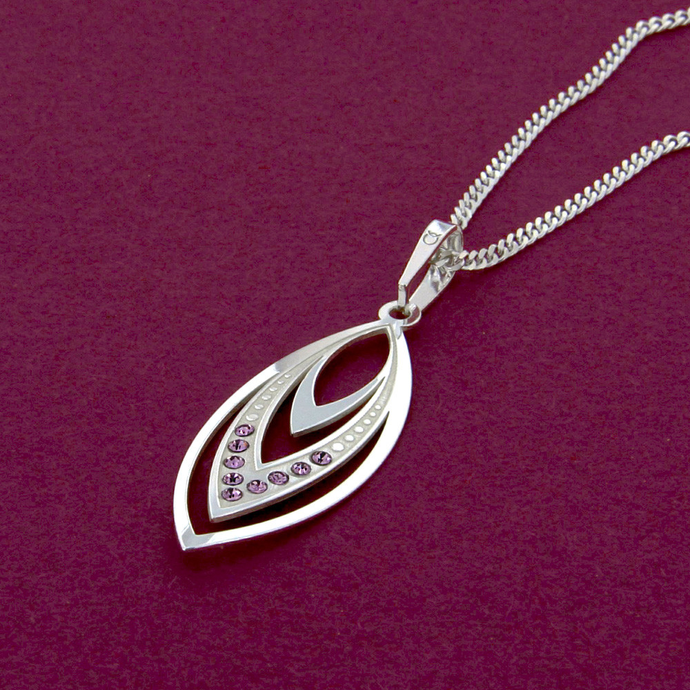 Fialové kamínky jsme zasadili do střední části půvabného stříbrného přívěsku na stříbrném řetízku. Září stejně čistě jako jejich sestry na obloze, jasné hvězdy v souhvězdí Panny.