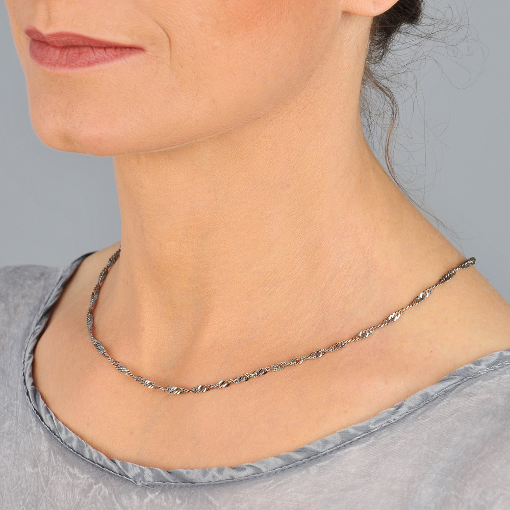 Rhodiovaný stříbrný řetízek Singapore 42+7 cm
