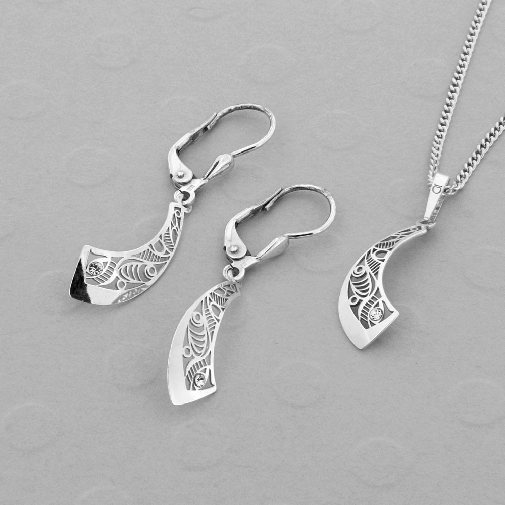 Stříbrný set přívěsku, řetízku a náušnic KO0836M_NA0487