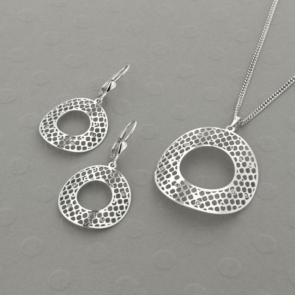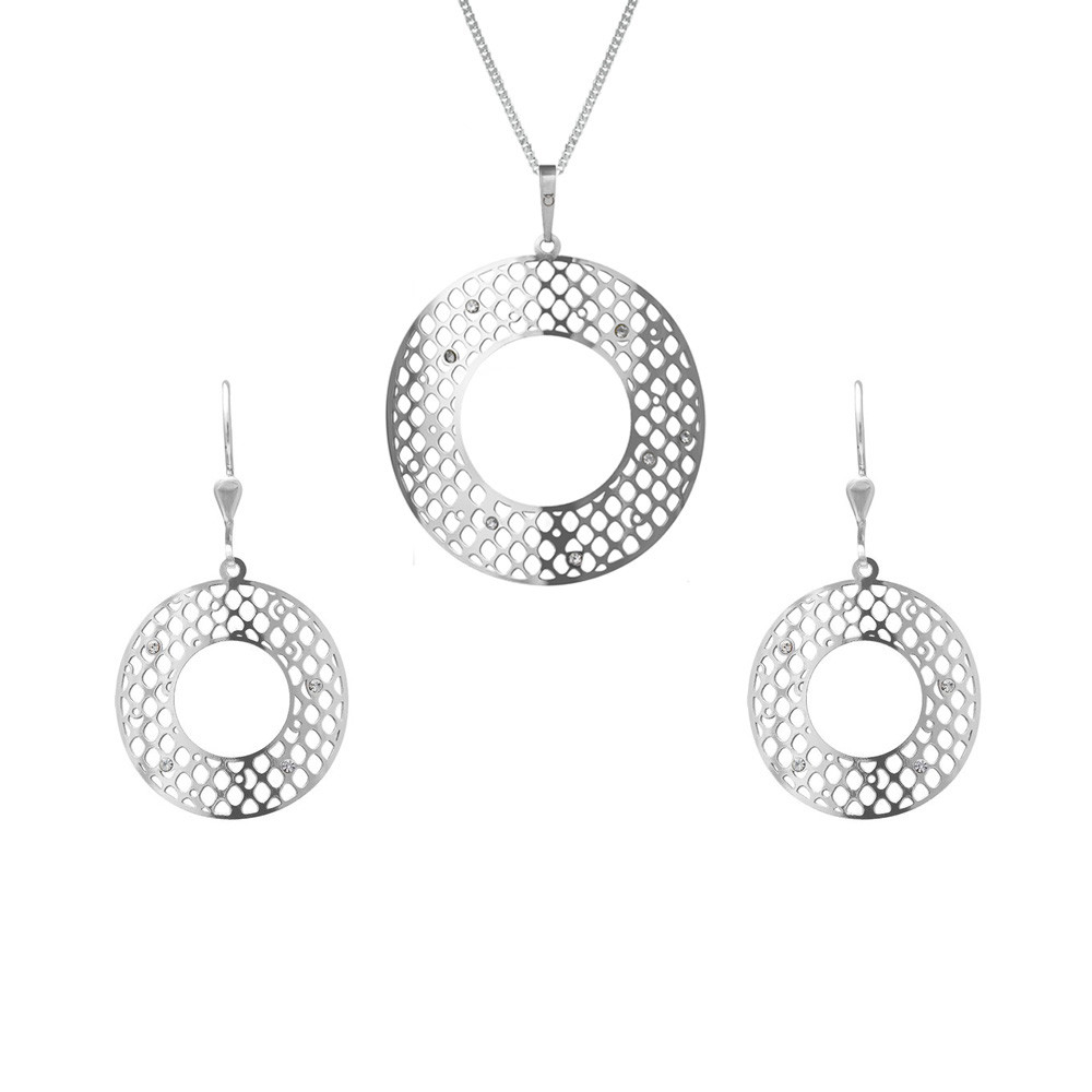 PRAQIA Stříbrný set přívěsku, řetízku a náušnic Eclipse